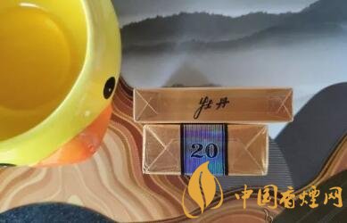 顶部金细支写着牡丹二字;金短支用银色条纹封条粘贴,上边写着数字20。