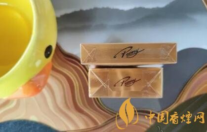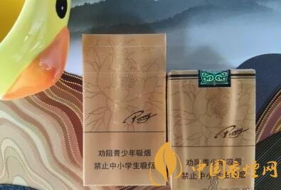 同为金支系列的它们背部也基本相同,两款都在金色的底色之上用更亮的金色条纹绘出了一朵盛开的牡丹花,在警示标语的上方有着艺术字体的牡丹英文“Peony”。仔细看了一下,虽然这两款金支牡丹颜色十分相近,但是烟盒的材质是不同的,金细支的烟盒要更为细腻一些,金短支的烟盒是细密的网格装。