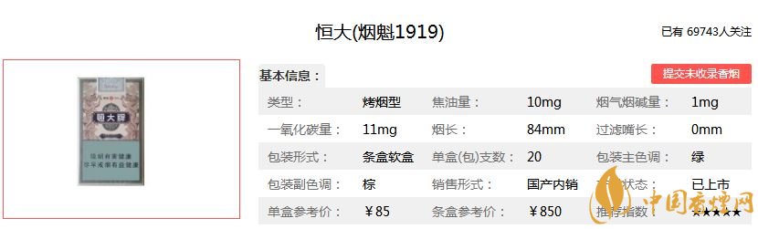 恒大香烟创牌于1947,距今已有70多年的历史了。恒大牌香烟曾被多次评为名牌产品。今天为大家介绍一款恒大烟魁1919香烟。烟魁1919多少钱一包?下面小编就带大家了解一下恒大烟魁1919香烟的价格以及辨别真假的方法。