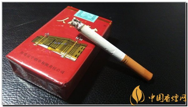 包装不得不承认,旗帜鲜明,氛围正统和中华好像,红色的底色加上金色线条加以衬托,烟盒正中间的气势宏博的金色人民大会堂闪耀无比,两座中华灯塔矗立,人民大会堂图案下的红塔辽宁烟草有限责任公司标明了此烟的出产地。