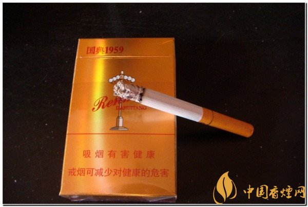 打开烟盒,首先看到的是锡纸上国典1959字样。靠近一闻,挺清爽的烟草香,带点凉清酸爽的气味。手捏烟支,感觉充实,烟丝的色泽鲜艳。过滤嘴是金黄色的,上有““人民大会堂”的字样。过滤嘴裙带处有一道白金色的金箍,金箍下是“国典1959”字体。