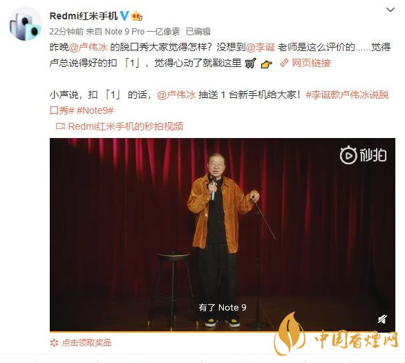 据悉,卢伟冰还将于12月1日再次开启个人脱口秀直播,届时Redmi Note 9系列正式上市发售。