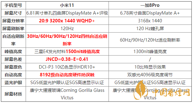 小米11和一加8Pro屏幕参数对比 哪款手机屏幕更好