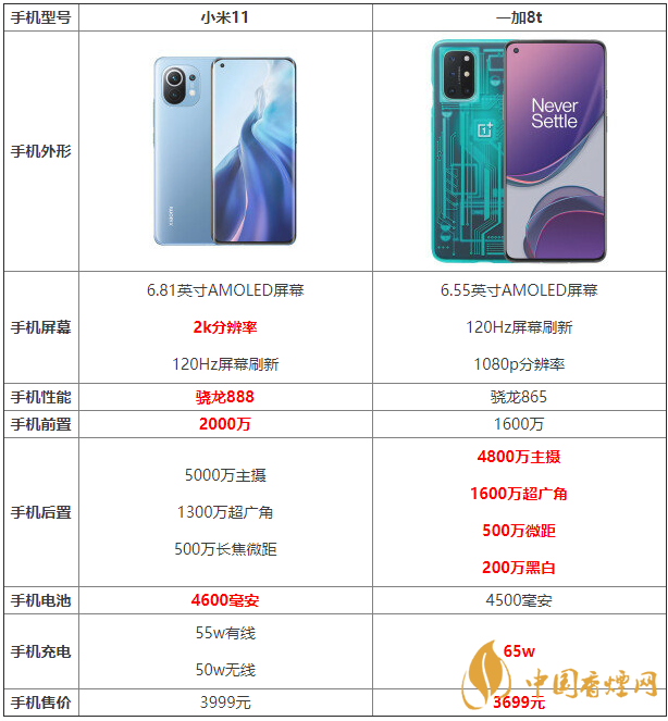 小米11作为今年刚发布的新款手机,它和一加8t这两款手机都是今年十分热门的手机,那么这两款手机具体的参数对比怎么样?哪款手机更值得入手?下面jrs直播小编将对小米11和一加8t参数对比进行介绍,感兴趣的朋友一起来看看吧!