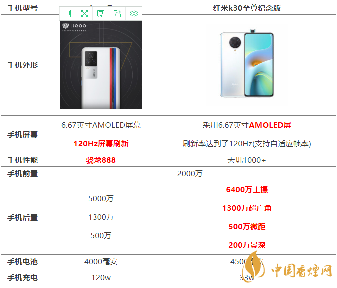 iQOO7和红米k30至尊纪念版哪款手机更好 参数对比详情