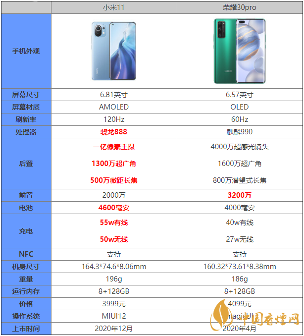 小米11作为今年最强机型,许多小伙伴对这款手机都十分关注,那么这款手机和荣耀30pro这两款手机的区别是什么?哪款手机更值得入手?下面jrs直播小编为大家带来最新的小米11和荣耀30pro参数对比,感兴趣的朋友快来看看吧。