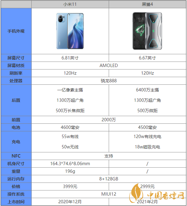 黑鲨4和小米11都是大家十分关注的手机,那么黑鲨4和小米11哪这两款手机的区别是什么?黑鲨4和小米11哪款手机更值得入手?接下来中国香烟小编为大家带来最新的黑鲨4和小米11参数对比,感兴趣的朋友快来看看吧。