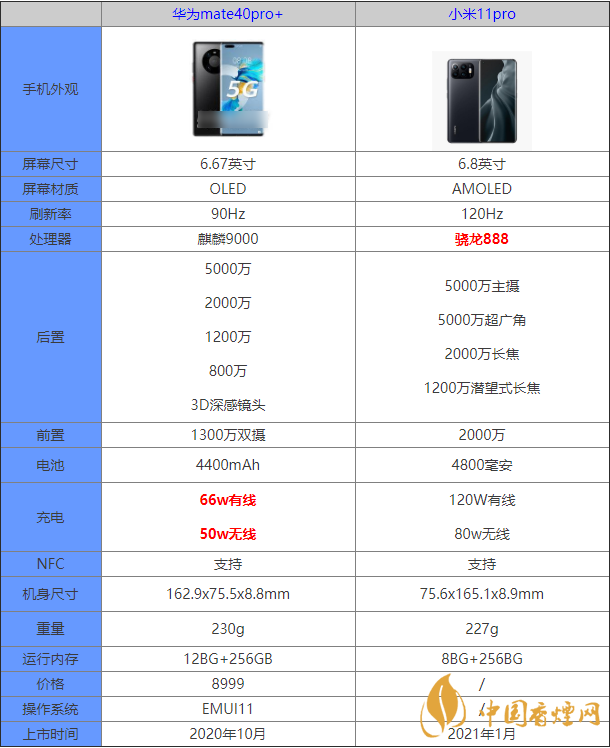 小米11pro和华为mate40pro+参数对比 哪款手机更值得入手
