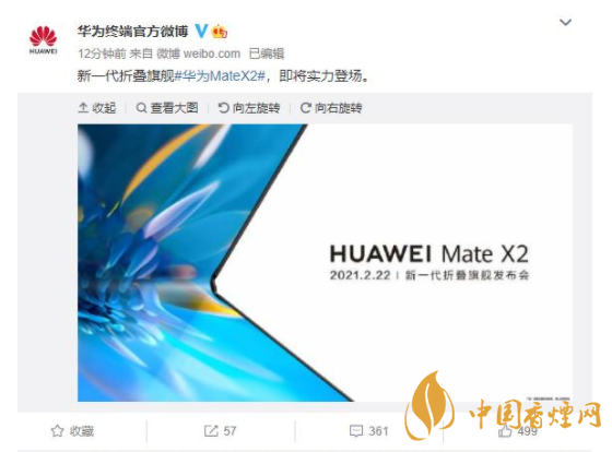 2月3日9点华为终端官方微博正式发布:新一代折叠旗舰华为MateX2,即将实力登场。根据官方的信息华为Mate X2将于2021年2月22日正式发布,不出意外华为Mate X2应该是传统意义上新年第一机,因为那一天是正月十一。现在不得不佩服余承东的勇气敢在春节之前公布华为Mate X2的发布日期,毕竟中间有一个春节七天长假这对于预热机型是极为不利的。但华为就是华为向来不走寻常路,接下来估计官方会正式进入华为Mate X2的预热周期。