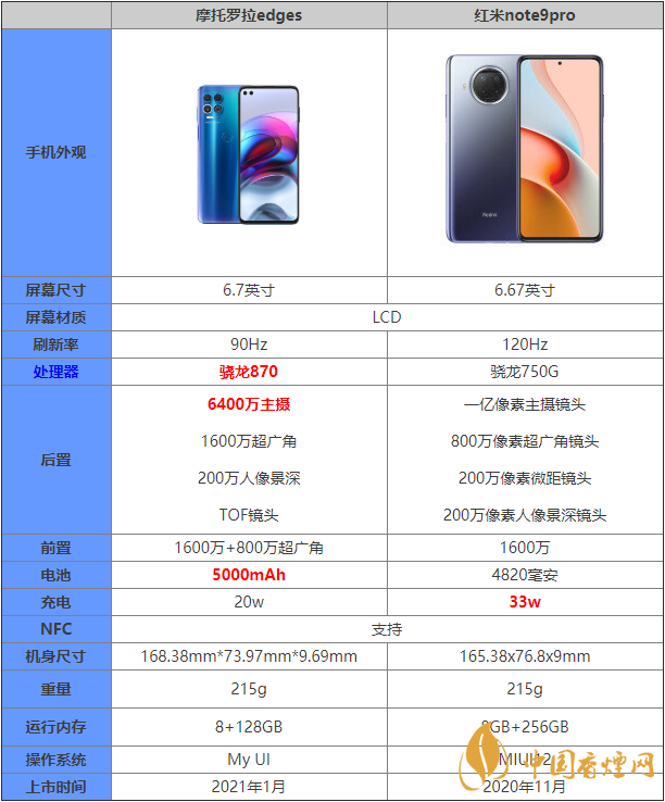 摩托罗拉edges和红米note9pro参数对比-哪款手机更值得入手