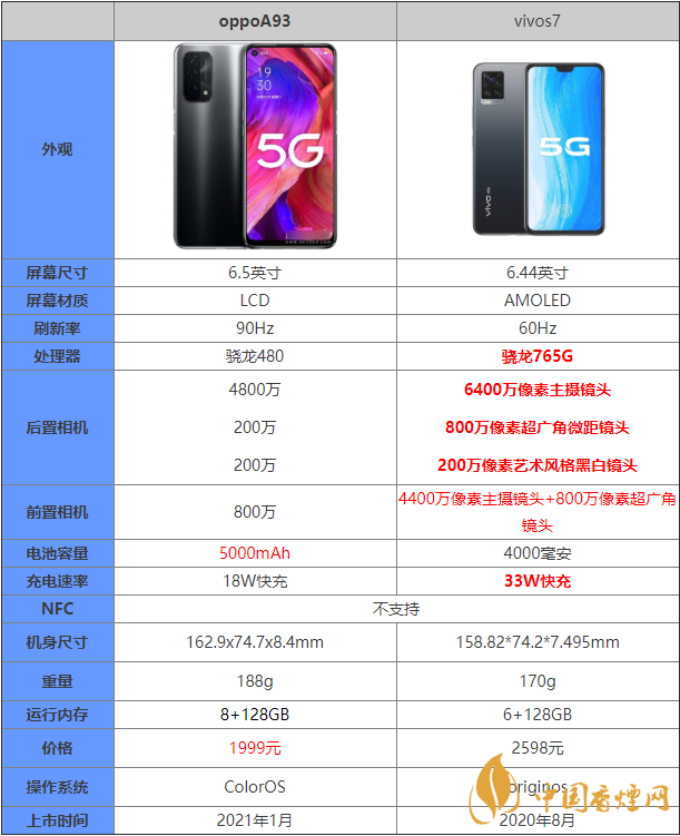 小结:oppoa93为用户带来更大的电池,vivos7为用户带来更快的充电速度