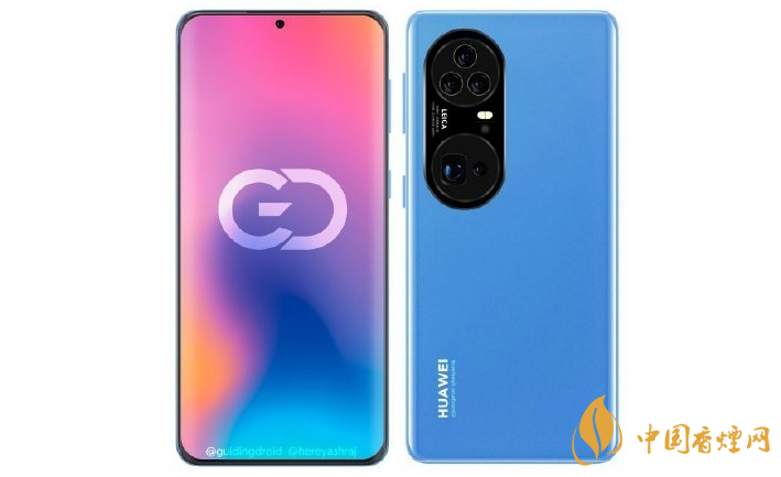 手机正面延续了之前P40 Pro以及Pro+版本的四曲面屏,但是曲率更小,更接近今年流行的微曲面屏幕,采用居中打孔。但是,P系列是一条带有强大影像基因的产品线,所以即便真的使用居中打孔,但是为了前置摄像头的拍摄质量,孔径是否真的如渲染图所示还是要打一个问号。