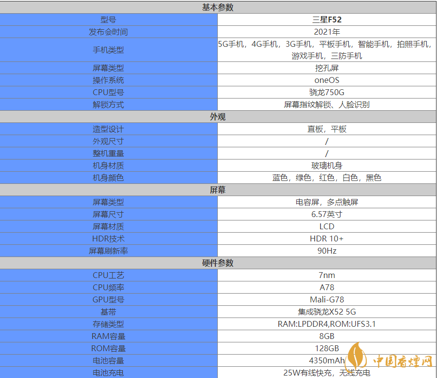 三星F52是一款全新的三星中端5G手机。该手机为用户提供了一种新的具有成本效益的手机选择。它采用了挖孔筛网设计。后置摄像头模块是矩形设计,可以为用户提供良好的手机屏幕显示和拍照功能。一起和小编来了解一下吧。