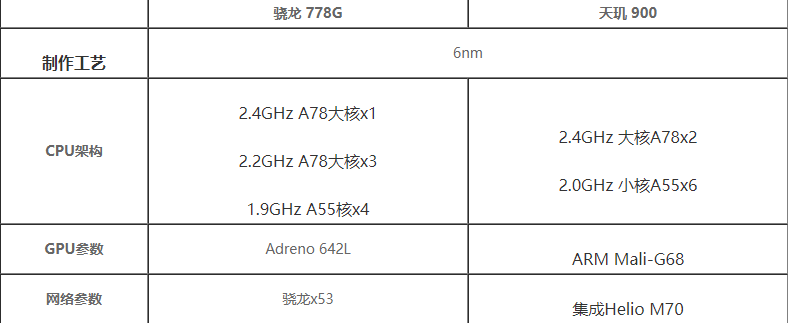 骁龙778G和天玑900:都采用的是6nm制作工艺。