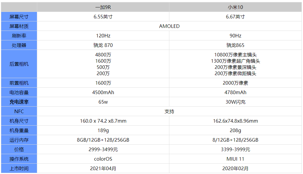 【一加9r和小米10哪个好-小米10和一加9r哪个值得入手】相关推荐文章: