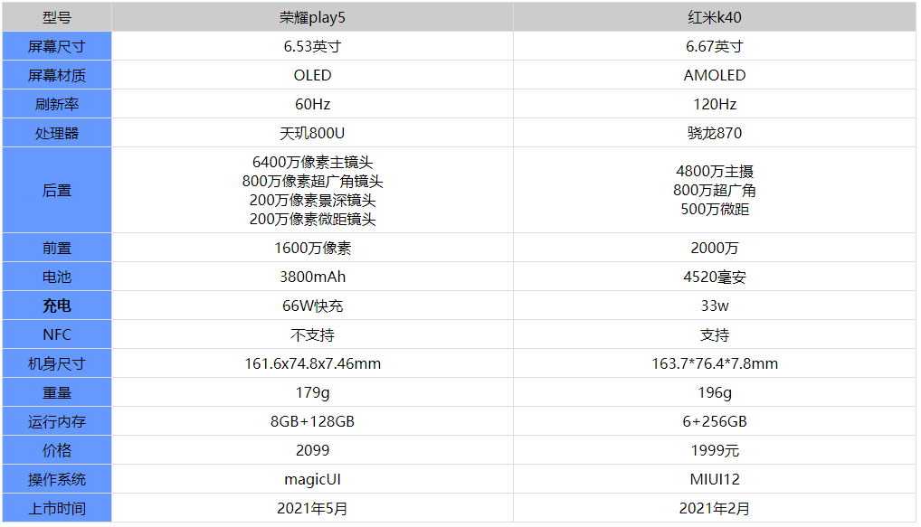红米k40和荣耀play5哪个好,红米k40和荣耀play5这两款手机的价格差不多,也都是今年才推出的手机,能够为大家提供不错的性能体验,哪款更值得入手,区别有哪些呢,感兴趣的小伙伴就接着看下去吧!