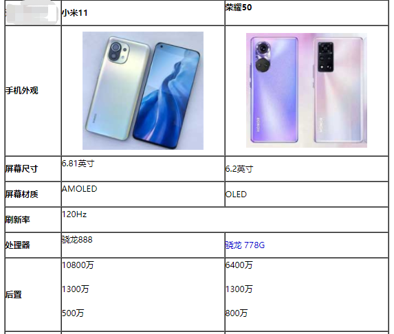 【荣耀50和小米11选哪个-荣耀50和小米11哪个值得入手】相关推荐文章: