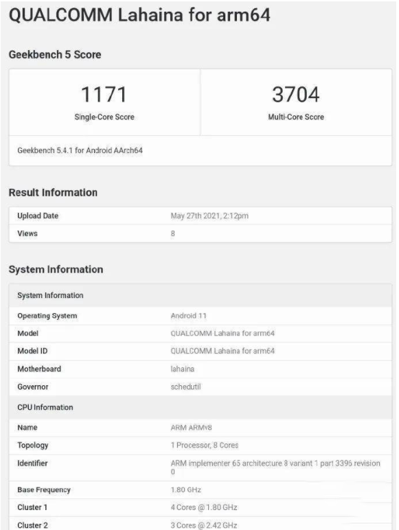 从跑分情况来看,其中骁龙 888 Plus 版单核跑分为 1171 分,多核跑分为 3704 分。而普通版骁龙 888 跑分单核为 1138 分,多核跑分 3603 分。