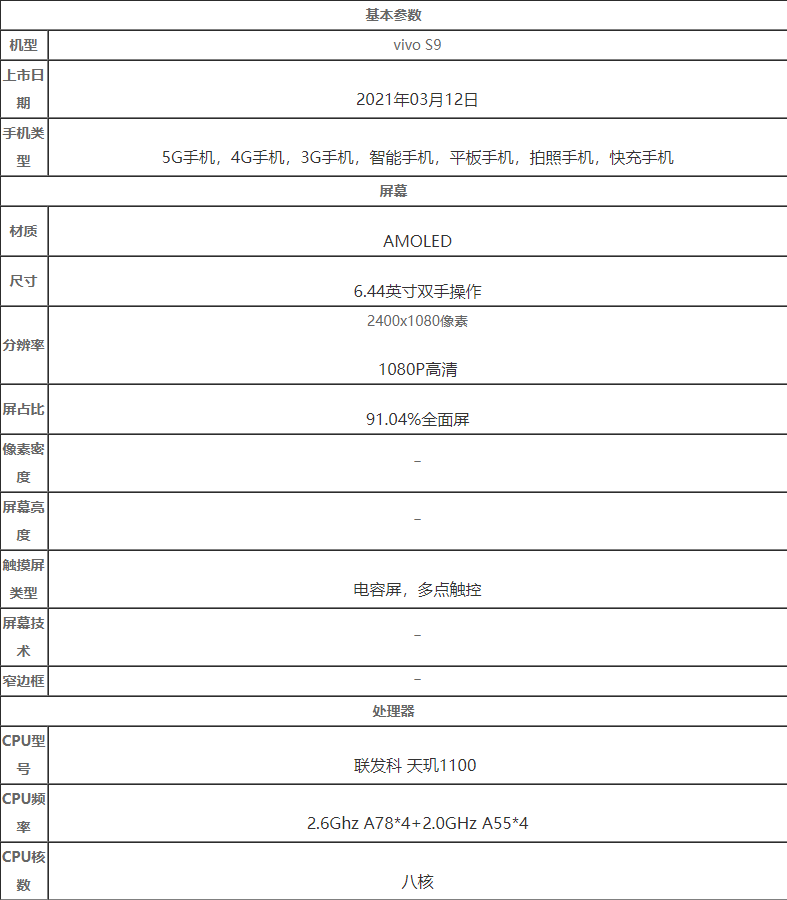 vivos9参数配置详细参数一览,vivos9参数配置详情介绍查询。vivos9是vivo旗下生产的一款系列产品,可以说是vivo旗下的门面手机,发布至今的销量一直都是非常高,深得广大朋友们的关注。下面小编整理了一些关于vivos9参数配置详细参数的相关资讯,仅供大家参考。