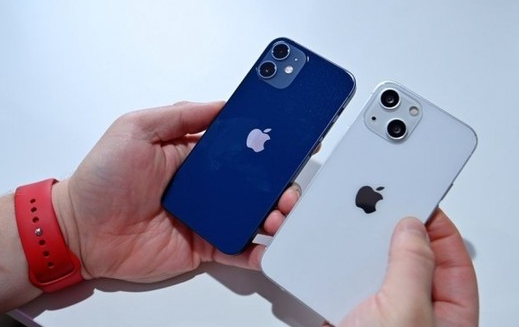 在iPhone 13 mini与iPhone 12 mini的对比中,可以看到,两者都拥有两颗摄像头,但排列有所不同,12 mini的镜头在左边呈上下发布,而13 mini呈对角分布。不过,13 mini的整机尺寸似乎要大一些。再来看iPhone 13与iPhone 12的对比,iPhone 13也是对角设计,两者的尺寸也几乎一样。