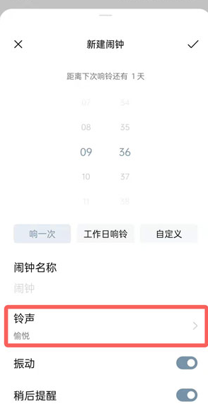 5、返回创建或者编辑闹钟页面,从铃声下方显示的铃声,确保自己已经成功选择了天气闹钟。