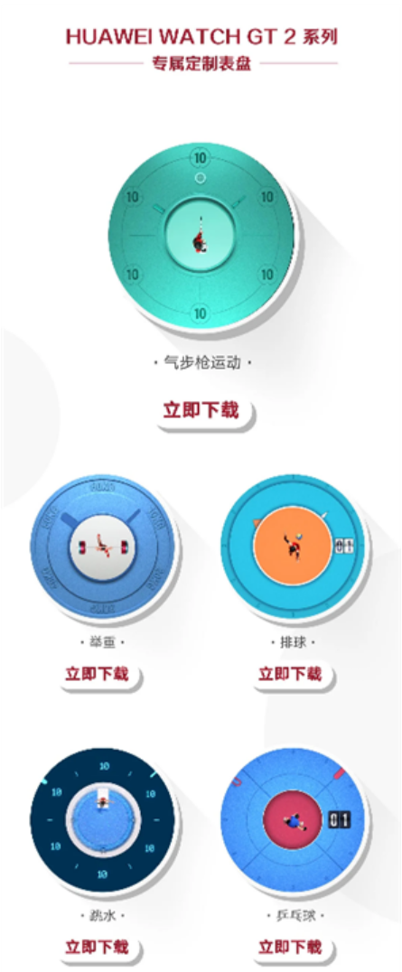 华为终端官方微博也在第一时间发布视频进行庆祝,同时还在表盘库上架了运动主题表盘,共5款:气步枪运动、举重运动、排球运动、跳水运动、乒乓球运动。