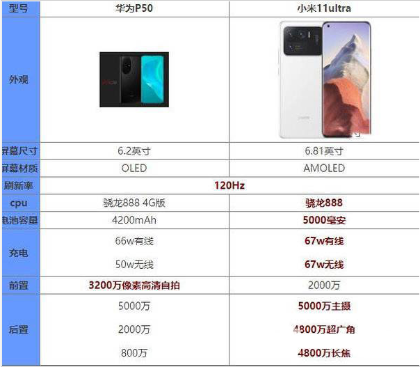 【华为p50和小米11ultra对比 华为p50和小米11ultra哪个好】相关推荐文章: