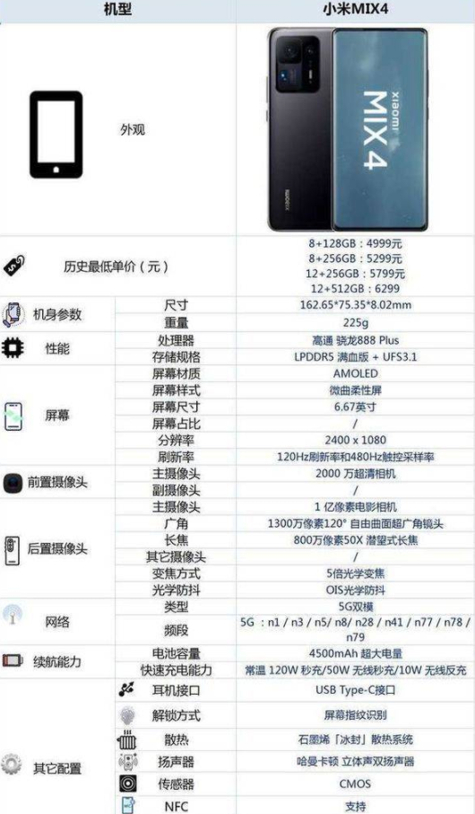 2、小米MIX4全球首发高通骁龙888plus处理器。