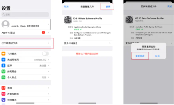 ios15beta更新首先需要下载描述文件,有了iOS15描述文件,才能进行第2步的更新操作。