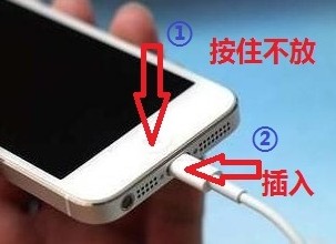 2、下一步我们需要启动itunes,将数据线USB大头插入电脑,按住Home键,然后将数据线另一头插入手机。