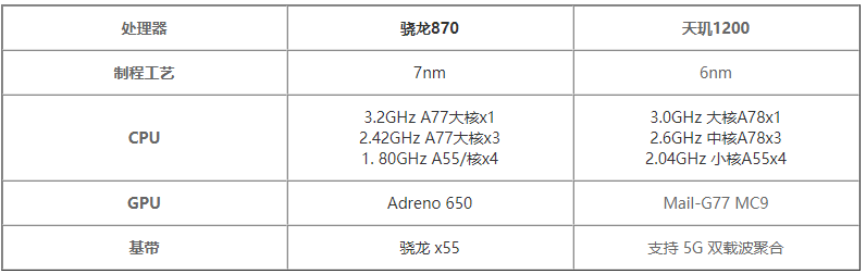 天玑1200相当于骁龙870