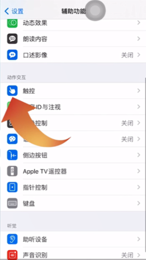 4.然后打开设置选项,在设置点击辅助功能,进入辅助功能页面后点击触控选项,