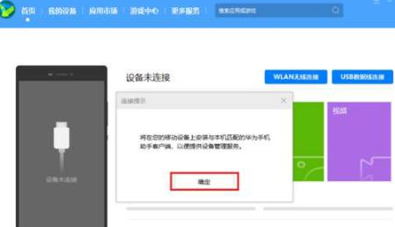 2、手机安装华为手机助手,电脑端上会弹出安装提示,对话框中点击“确定”,如下图所示:
