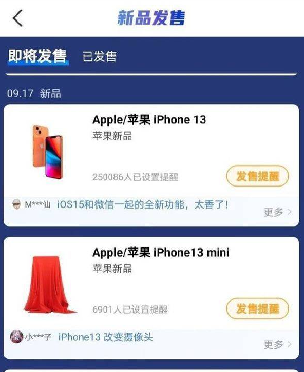 现在根据爆料,某电商平台 App 截图显示,苹果 iPhone 13 系列将在 9 月 17 日发售,AirPods 3 将在 9 月 30 日发售。预计苹果秋季新品发布会将在 9 月 14 日或者 9 月 15 日举行。