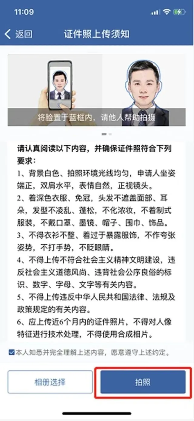 (二)使用手机拍照的照片申领。对信息系统无符合要求留存照片的,申请人可通过拍照方式提交电子照片,申领电子驾驶证。提交照片后,公安机关交通管理部门将在1个工作日内进行审核,对符合要求的,“交管12123”APP将生成电子驾驶证,并推送申请成功信息。需要提示的是,请认真阅读照片拍摄须知,选择白色背景,着深色衣服,请他人拍摄。