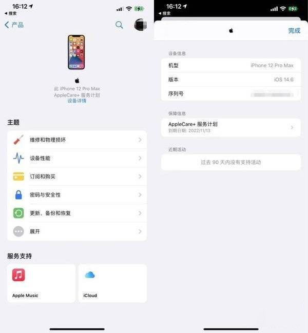 打开 Apple 支持,会显示当前的设备的信息,点击“设备详情”,可以查看具体的保修日期。