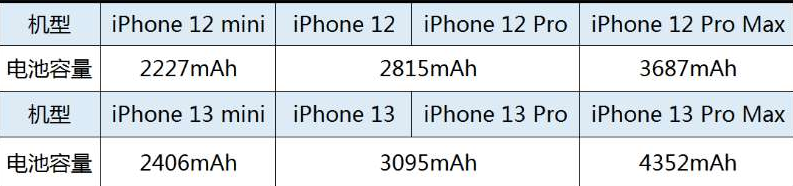 iPhone 13系列配备了比 12 系列更大容量的电池,不过重量也有所增加;