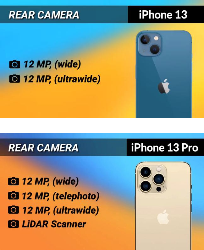 iPhone 13 Pro与13 Pro Max的升级相对更大:屏幕采用了更省电的 LTPO 技术,支持 120Hz刷新率,依旧配有后置 LiDAR『激光雷达』;