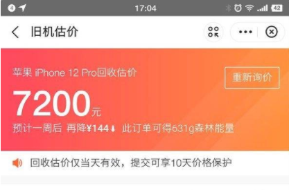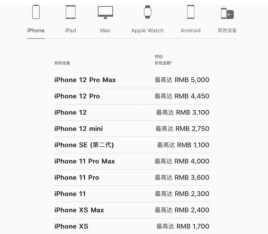 首先,对比一下苹果官网推出以旧换新折低价,二手iPhone 12 Pro正常使用情况下,最高回收价达4450元。