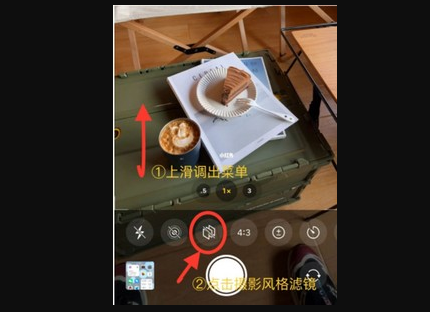 1.滑动相机界面上的功能菜单,点击相机风格图标。