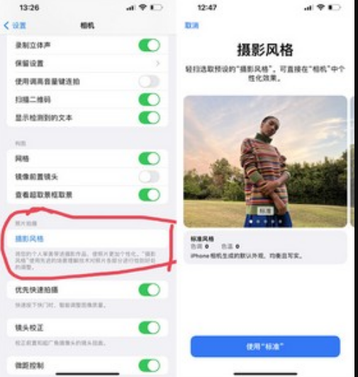 您还可以点击设置-相机-摄影风格,选择一种使用风格。