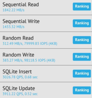存储方面,iQOO Neo6 采用了 LPDDR5 的内存和 UFS3.1 的闪存,在 Androbench 中跑分如图。