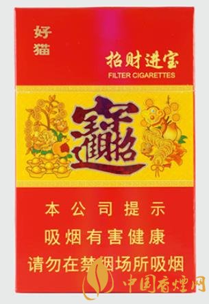 好猫(招财进宝)售价为7元/包。这款香烟吸味上传承了好猫品牌的香气风格。为满足中档卷烟消费者的吸食需求,通过多产区烟叶配伍和膨胀梗丝的合理配比以及常温加料、气流烘丝的关键工艺参数优化,进一步彰显了产品“烟气绵,入喉顺;烟香纯,余味净”的吸食特点。只觉烟气柔绵,如醍醐灌顶;口腔润泽,似回味犹存。好猫无疑是陕西人烟茶余饭后最应景的陪伴。