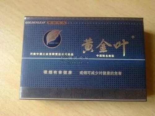 黄金叶(特制茗仕之风)是一款烤烟型香烟,采用津巴布韦、云贵以及豫西地区的优质烟叶。该香烟焦油量13mg,烟气烟碱量1.1mg,烟气一氧化碳量13mg,包装主色调为蓝色。