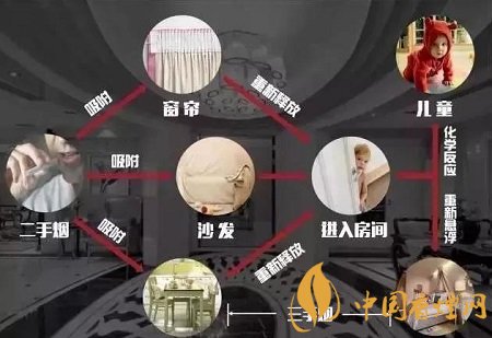 二手烟中对人有害的挥发性有机物,会在吸烟后的45分钟内从体内溢散出来,附着在衣物及环境之中。也就是所谓的三手烟。吸烟过后,衣服、头发、车子、墙壁、家具上到处都会残留有毒物质。很多人应该对二手烟都不陌生,简单的说,就是你旁边有人在吸烟。二手烟由主流烟和侧流烟组成,主流烟就是吸烟者吸入后吐出来的烟,而侧流烟则是香烟自燃时产生的烟雾。