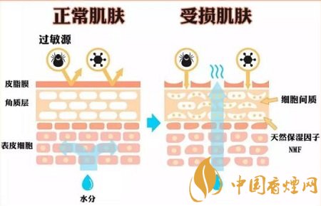 烟草里的“丙酮”,是导致皮肤敏感的罪魁祸首之一。皮肤上的油脂膜既可以阻挡外来过敏原刺激到肌肤;又能防止皮肤内的水分被空气蒸发。这样才能构建出健康的“肌肤屏障”。