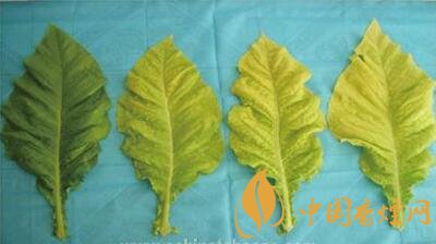 上二棚叶和顶叶,处于光照充足、蒸腾作用激烈的条件下生长成熟,叶片厚、组织紧密、干物质多、成熟慢。上部叶成熟叶龄为80~90天。成熟时,叶面淡黄,微起黄斑,充分成熟采收(顶部4~6片显示明显的成熟特征)。