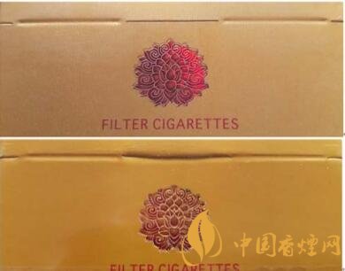 真品卷烟花团图案清晰、立体感强,烫金线明亮。该款假冒卷烟图案模糊,无立体感。