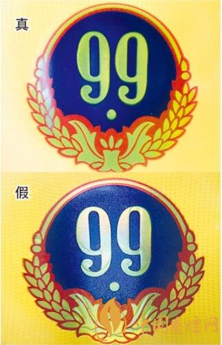 真烟背面“99”“麦穗”凹凸印刷与图案完全重合;假烟则出现了明显偏离。