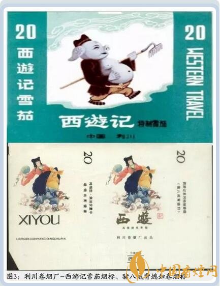 湖北利川卷烟厂出品的“西游记”套标中有一枚烟标以人格化的猪-猪八戒为主图,该烟标上的猪八戒憨态可掬,惟妙惟肖,还有另一款猪八戒背媳妇,图中猪八戒背着一名女子腾云驾雾,略偏头向后嘴巴微张似正与女子攀谈,女子手持蒲扇,一幅神态自若的样子。